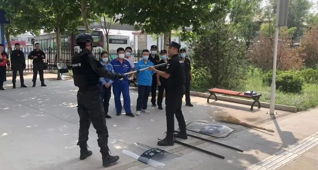 此次應(yīng)急演練分為警用器材使用規(guī)范的講解及模擬突發(fā)暴恐事件的應(yīng)急處置兩大項(xiàng)。首先,特警大隊(duì)萬(wàn)隊(duì)長(zhǎng)向全體參加人員詳細(xì)講解了盾、棍、叉等警用器材的功能,并對(duì)各器材規(guī)范使用進(jìn)行了詳細(xì)講解。