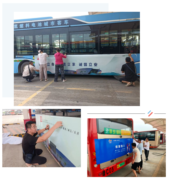 為進一步發(fā)揮公交車作為城市文明窗口的力量,引導廣大市民共同參與到全國文明城市創(chuàng)建中來,山東正晉公交廣告有限公司對公交車、公交候車亭等公益廣告進行了全面查缺補漏。驕陽似火的三伏天,廣告公司組織全體職工不分崗位,夜以繼日,全力投入到創(chuàng)城的工作中,與烈日較勁,與高溫抗衡,積極完成公益廣告發(fā)布任務,用堅守詮釋著責任和擔當,用汗水勾勒出高溫下美麗的風景線。