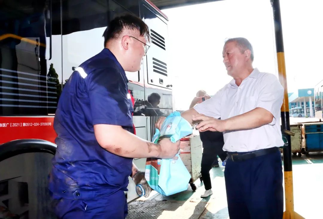 活動(dòng)現(xiàn)場(chǎng),陳國(guó)強(qiáng)為一線職工發(fā)放了毛巾、洗衣液、透明皂等“清涼大禮包”,并詳細(xì)了解了職工的日常工作和高溫勞動(dòng)防護(hù)措施情況,叮囑他們一定要增強(qiáng)自我保護(hù)意識(shí),做好防暑降溫措施,注意勞逸結(jié)合,保障自身安全,以最佳的精神狀態(tài)為廣大市民提供優(yōu)質(zhì)的公交出行服務(wù)。