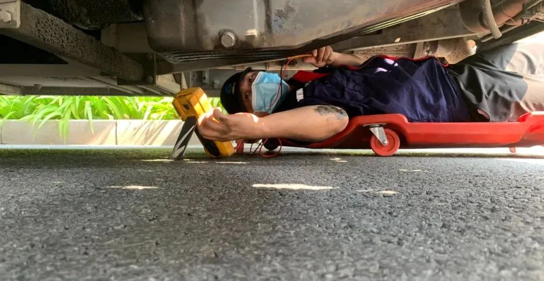 在分公司修理車間,停放著數(shù)輛等待維修的公交車,修理人員們正在對(duì)車輛進(jìn)行檢修,“熱火朝天”地工作著:有的頭頂烈日,蹲坐在公交車頂維修空調(diào);有的貓著腰鉆到狹窄悶熱的地溝里,頂著發(fā)燙的機(jī)器揮動(dòng)扳手;有的躺進(jìn)蒸籠似的公交車底,認(rèn)真檢查修理車輛故障......豆大的汗珠從他們的臉上不住地往下滴,衣服從來都是濕的,皮膚上到處都是油漬。“雖然很熱、也很辛苦,但想想這車經(jīng)過自己的雙手維修后又能安全上路,一切都是值得的。”修理工孫師傅說道。