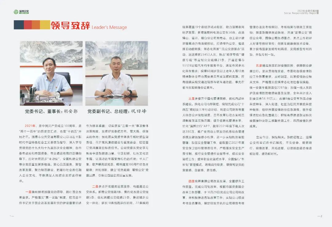 近日,《淄博市公共交通有限公司2021年度社會責(zé)任報告》正式發(fā)布,這是淄博公交正式對社會公開發(fā)布的第四份社會責(zé)任報告。