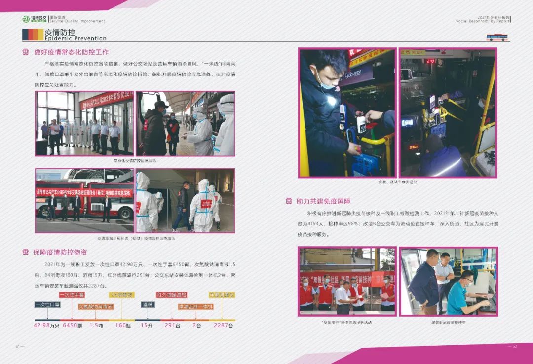 《報告》全文分為“領(lǐng)導(dǎo)致辭、關(guān)于我們、黨建引領(lǐng)、責(zé)任交流、服務(wù)提質(zhì)、科技創(chuàng)新、以人為本、未來展望”八大板塊,著重展示了淄博公交在黨建、宣傳、運(yùn)營、服務(wù)、低碳環(huán)保、技術(shù)進(jìn)步、信息化建設(shè)、以人為本、疫情防控等方面的主要工作情況。