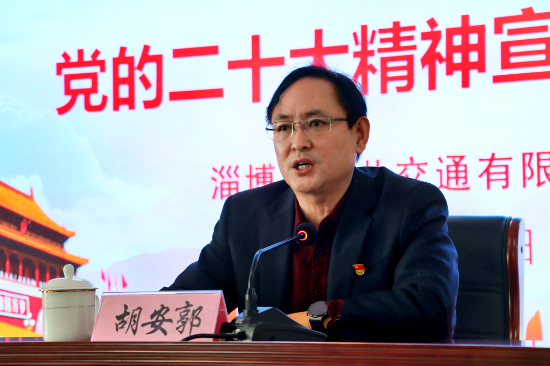 12月9日,按照市委統(tǒng)一部署,學(xué)習(xí)貫徹黨的二十大精神市委宣講團(tuán)到公司舉行宣講報(bào)告會,市委宣講團(tuán)成員、淄博市文化和旅游局黨組書記、局長宋愛香作宣講報(bào)告,公司黨委書記、董事長胡安郭主持會議并講話,公司領(lǐng)導(dǎo)班子成員、中層干部、2021年度優(yōu)秀黨員和一線職工80余人參加報(bào)告會。