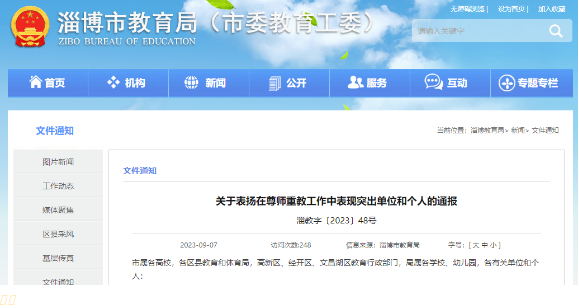 9月6日,中共淄博市委教育工作委員會(huì)、淄博市教育局發(fā)布通報(bào),對(duì)在全市尊師重教工作中表現(xiàn)突出的22個(gè)單位和3名個(gè)人給予通報(bào)表揚(yáng)。淄博市公共交通有限公司榮獲全市“尊師重教”表現(xiàn)突出單位稱號(hào)。