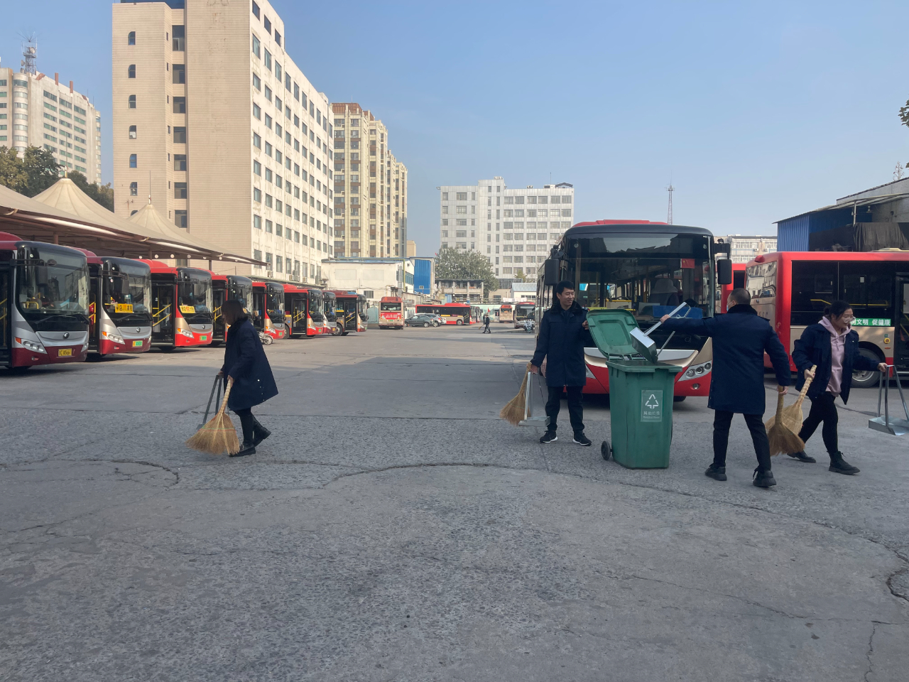 組織黨員突擊隊(duì)定期在場(chǎng)站內(nèi)開(kāi)展義務(wù)勞動(dòng),大家用掃帚、鏟子將場(chǎng)站周邊綠化帶內(nèi)的枯葉、樹(shù)坑中的垃圾、雜物進(jìn)行全面清除,同時(shí)對(duì)辦公室房前屋后積存的垃圾、紙屑、枯枝敗葉等逐一進(jìn)行清理整治,確保環(huán)境衛(wèi)生整治“全覆蓋”。